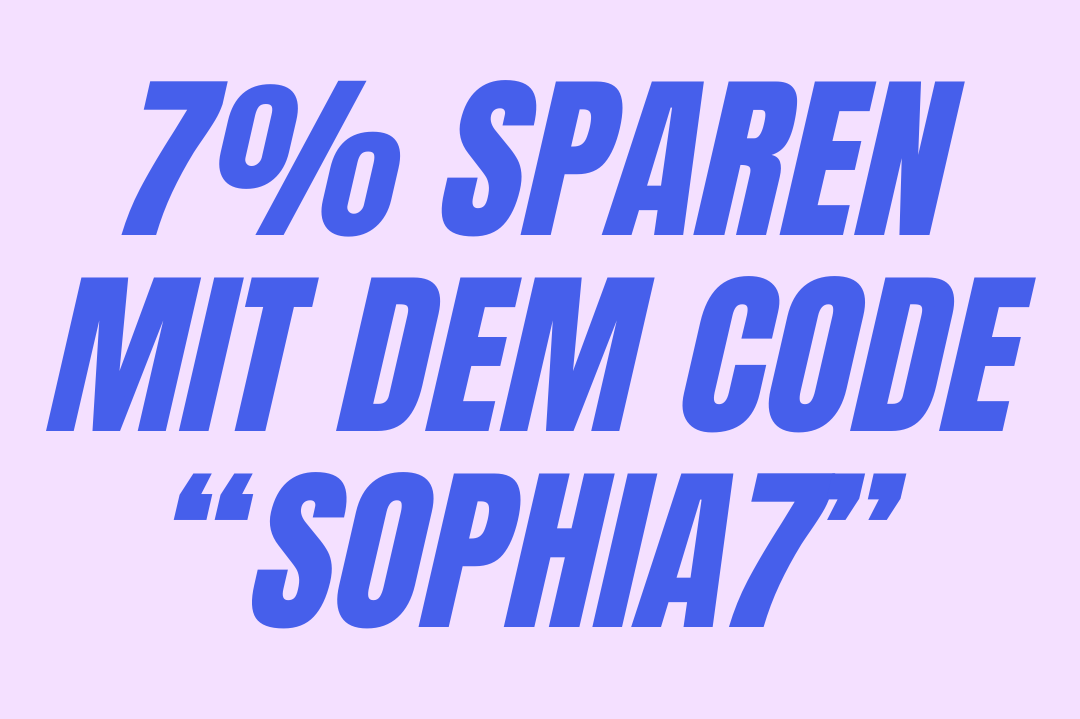 Mit dem Rabattcode SOPHIA7 sparst du 7 % auf deinen Einkauf.